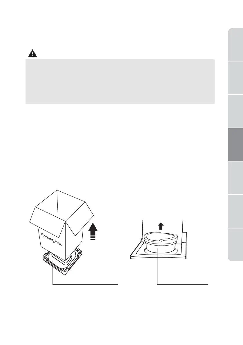 Retire la caja de embalaje y levante la lavadora hacia arriba y