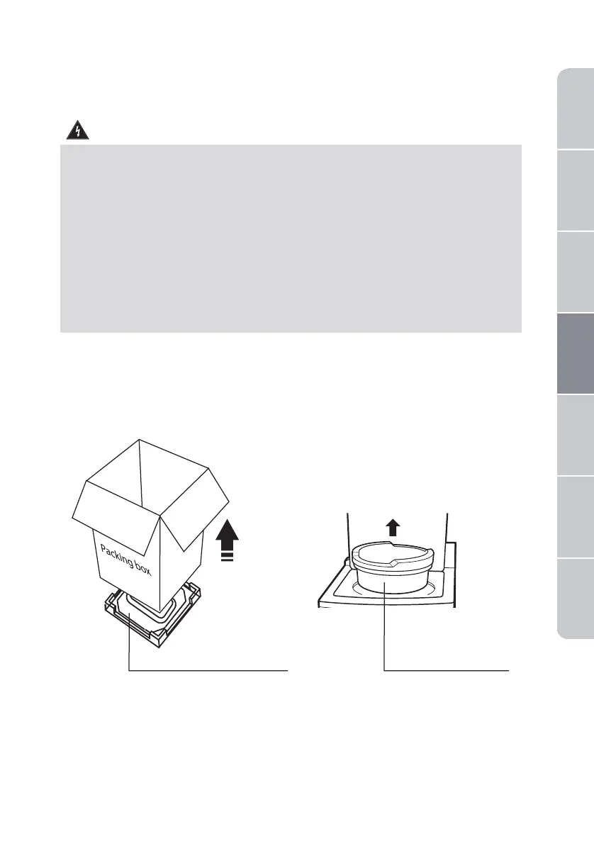 Retirez la boîte d’emballage et soulevez la laveuse pour enlever la base