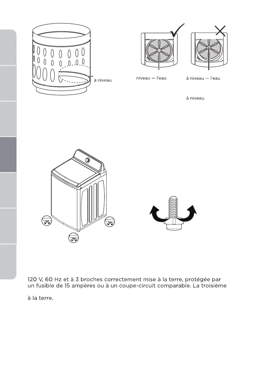 3. Si votre laveuse n’est pas à niveau, inclinez-la délicatement juste assez