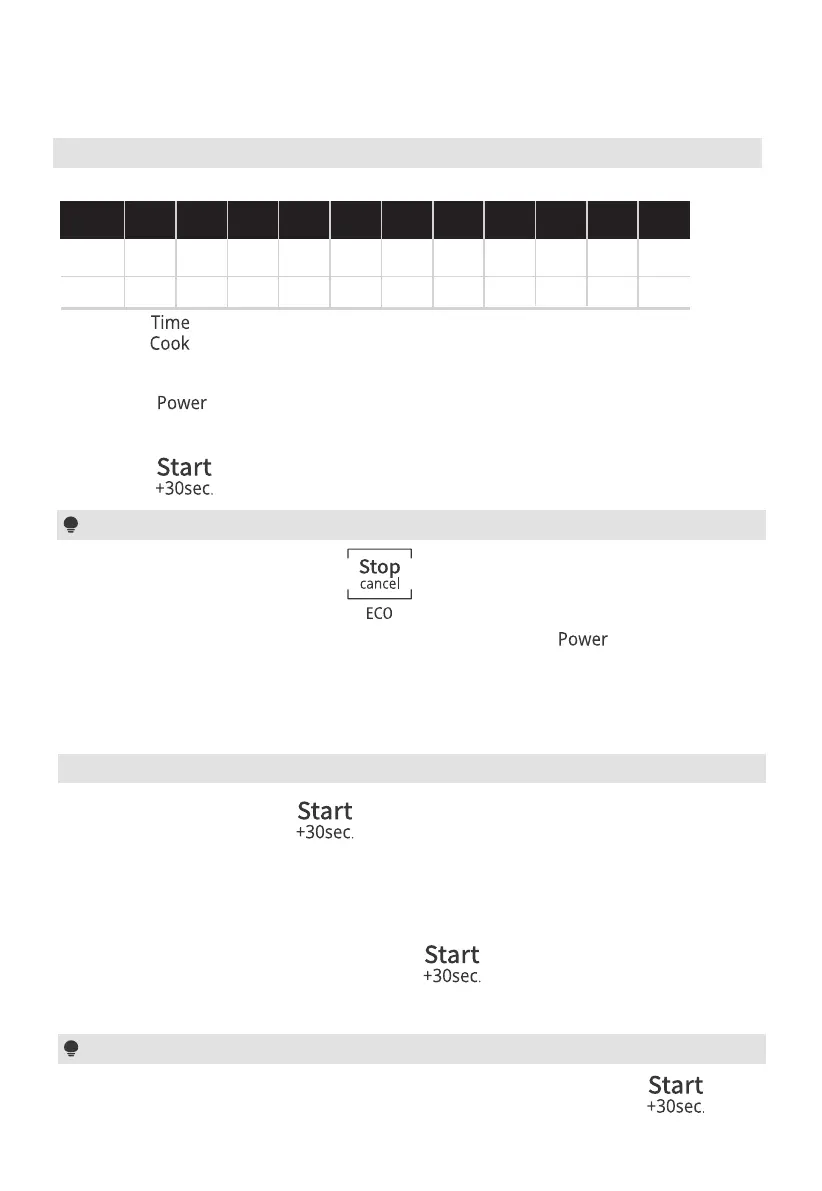 (1) In standby mode, press “ ” to cook food with 100% power level for