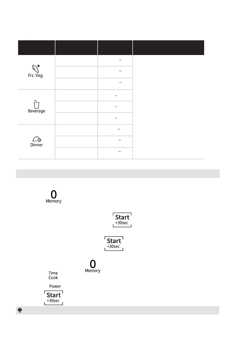 The auto menu, speedy cooking and kitchen timer function cannot be set as memory