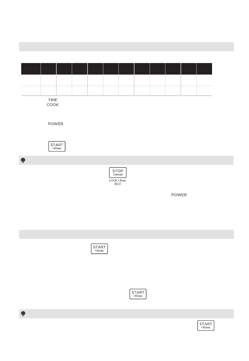 (1) In standby mode, press “ ” to cook food at 100% power level for