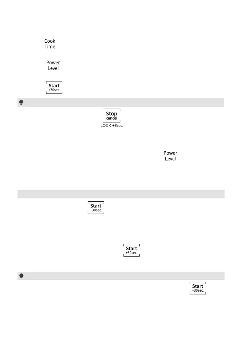 (1) In standby mode, press “ ” to cook food at 100% power level for