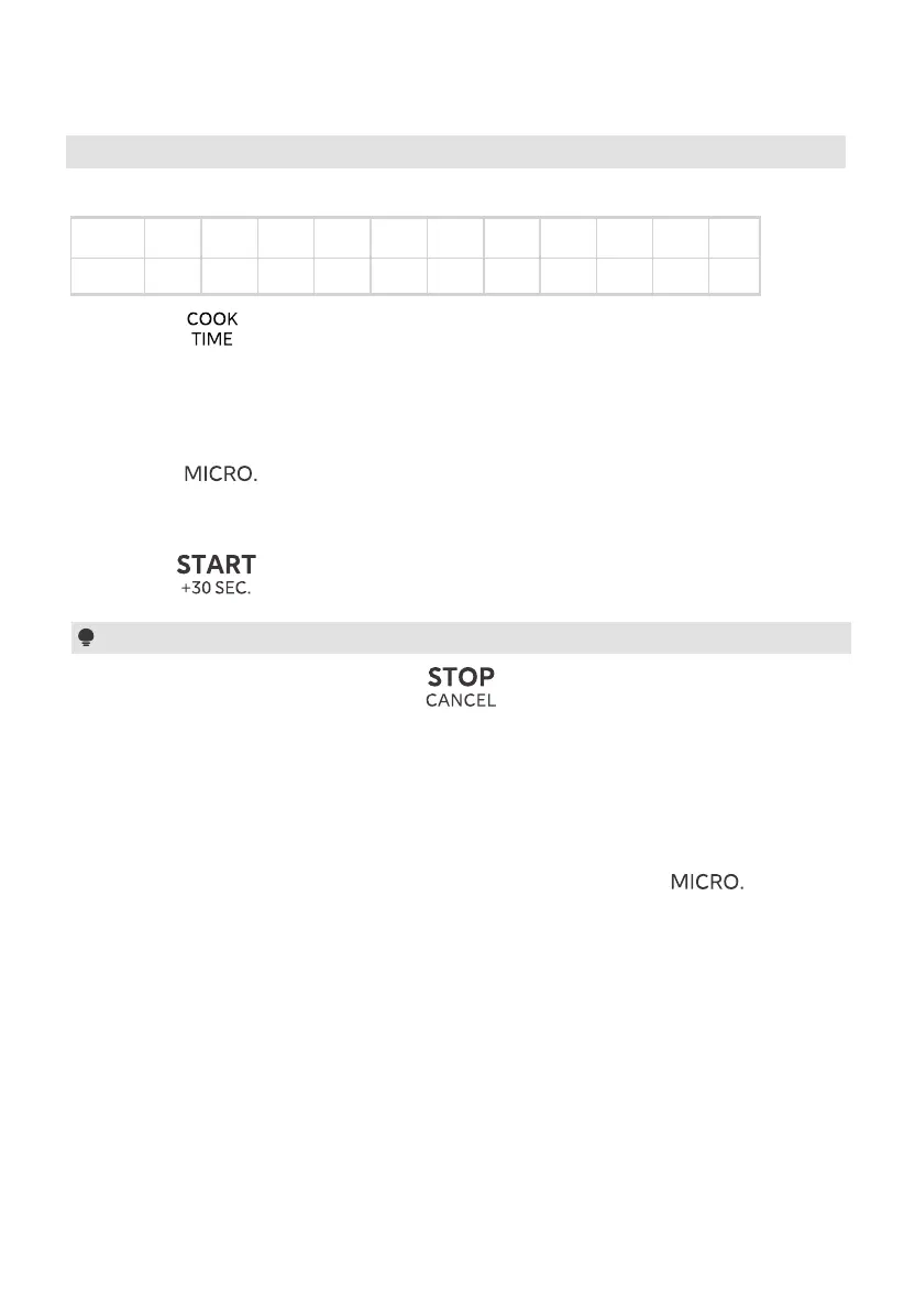 (2) Press the number keys to set the cooking time. The maximum time value is