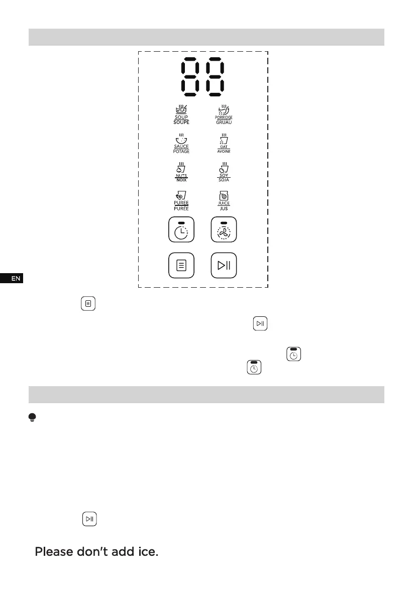 • The corresponding function LED will flash. Press the “ ” button to begin operation.