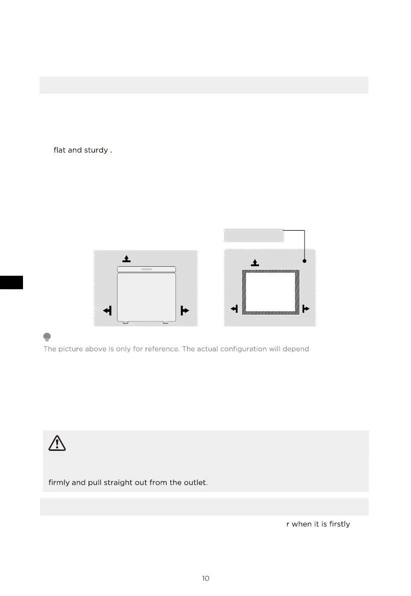 • Keep away from heat and avoid direct sunlight. Do not place the freezer in moist or