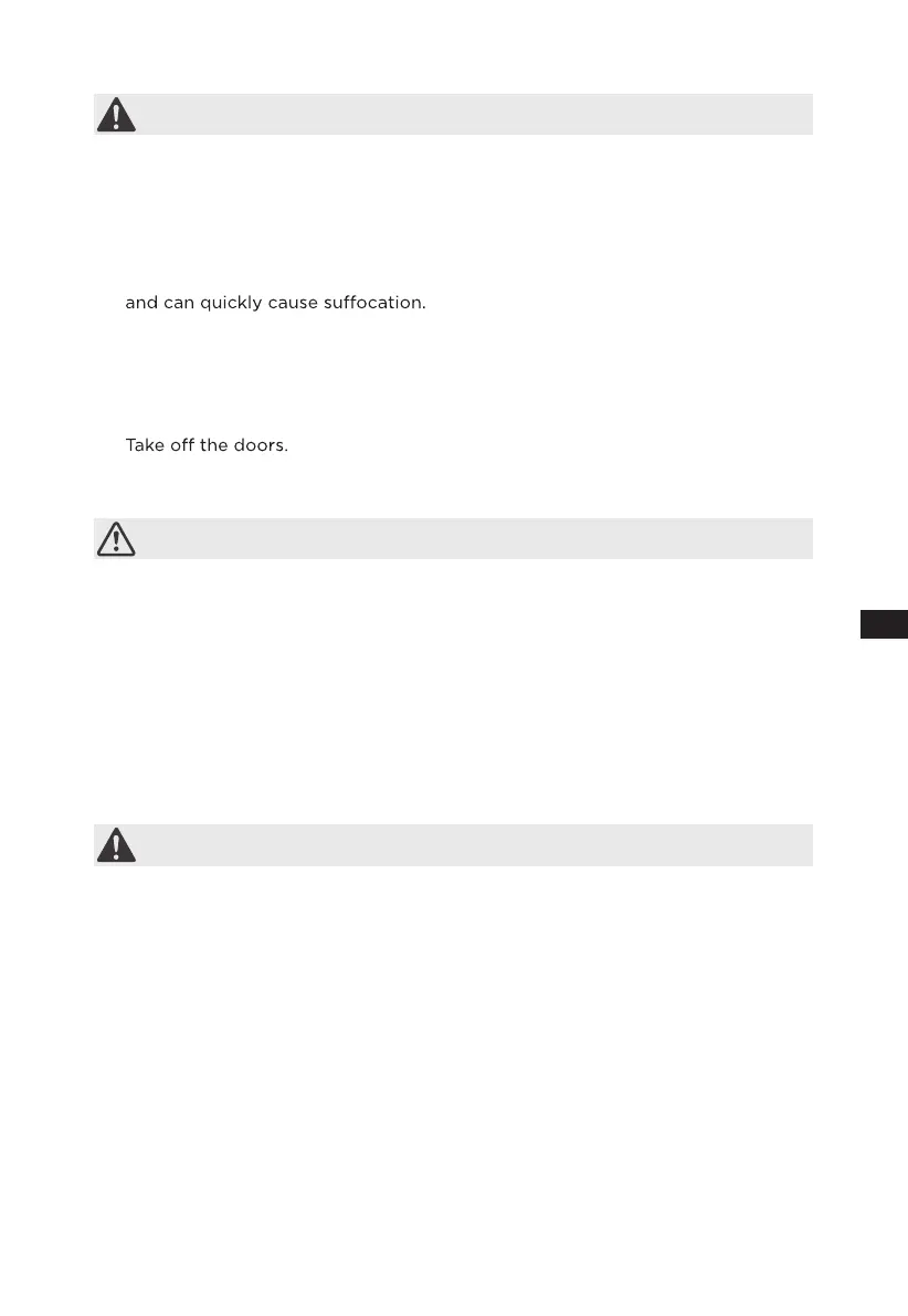 • Do not store beer, drinks or other liquids in bottles or tightly closed containers