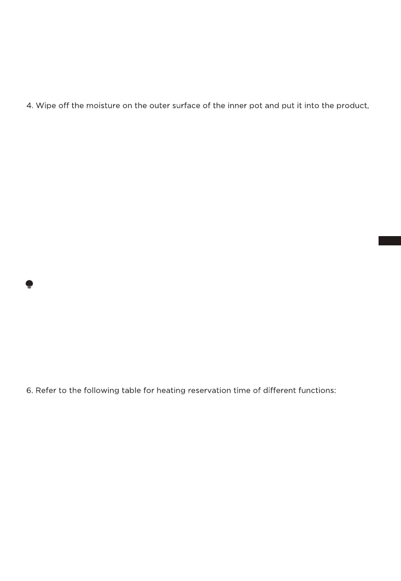 will be started; for example, the heating reservation time of WHITE RICE is 1:00, when