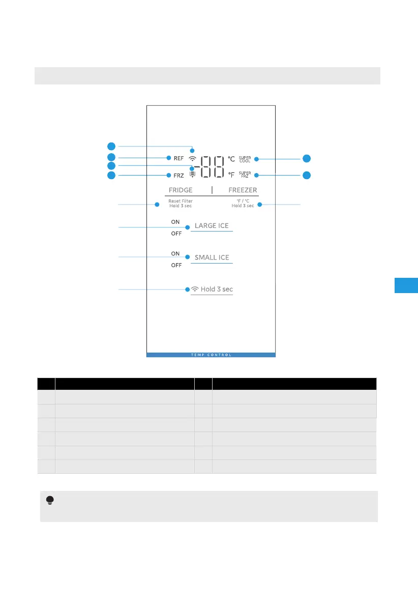 The control panel is located in the lower left corner of the refrigerator compartment.