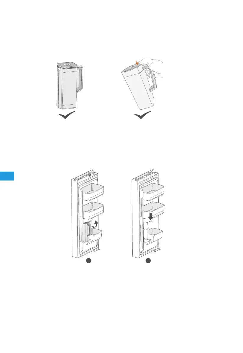 > Lorsque vous versez l'eau de la carafe, il est recommandé de presser le couvercle avec votre