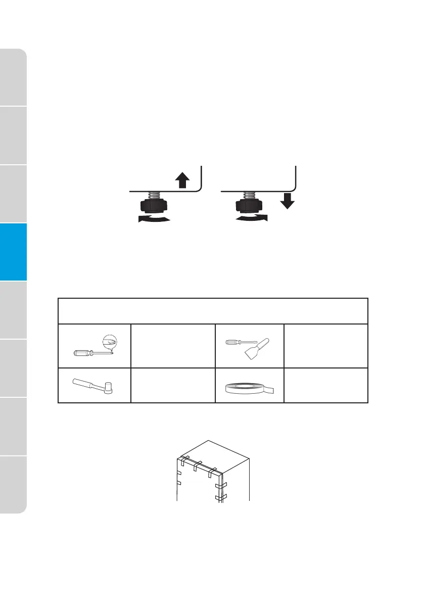 To Raise - Turn the leveling feet clockwise.