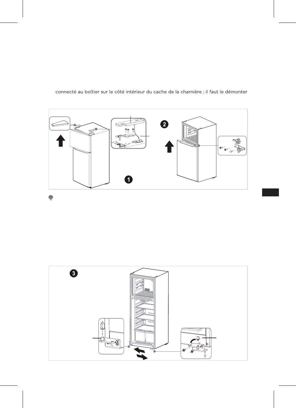 et retirez la charnière supérieure. Gardez les vis pour les réutiliser.
