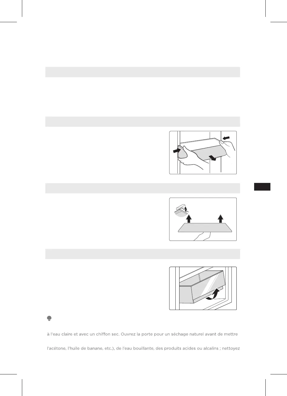 de l'eau et des détergents neutres non corrosifs. Le congélateur doit être finalement nettoyé