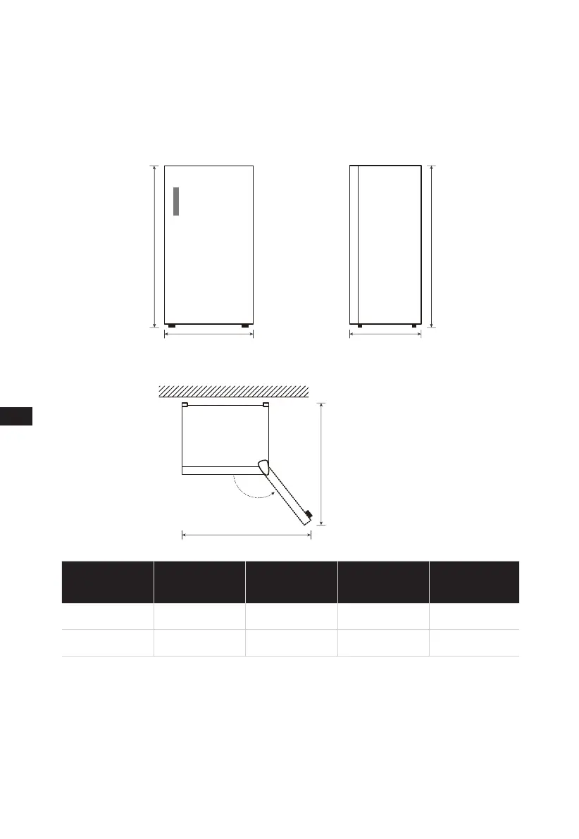 Diagramme d’encombrement (lorsque la porte est ouverte et lorsqu’elle est fermée)