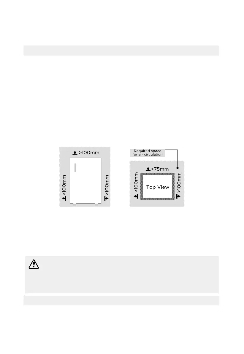 • The refrigerator should be placed in a well-ventilated indoor place; the ground