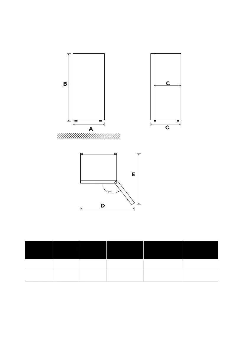 Space requirement diagram (when the door is open and when the door is closed)