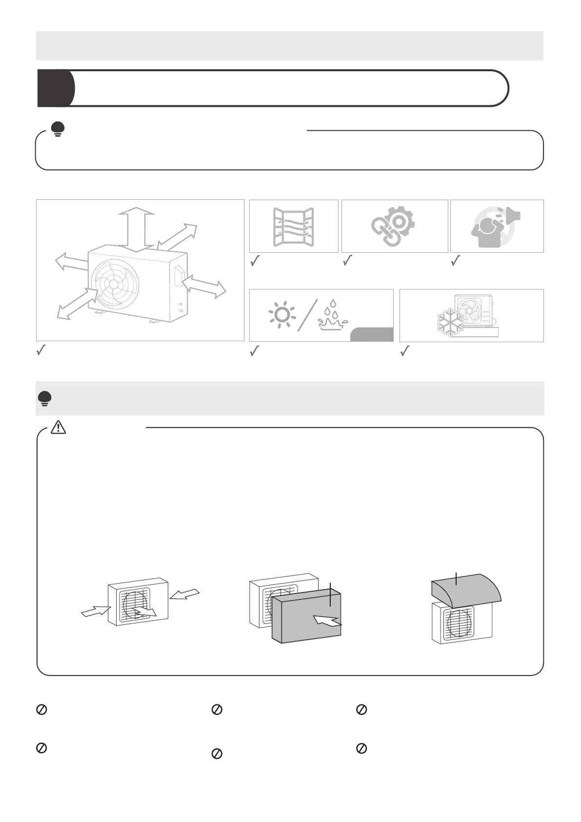 Before installing the outdoor unit, you must choose an appropriate location. The following are