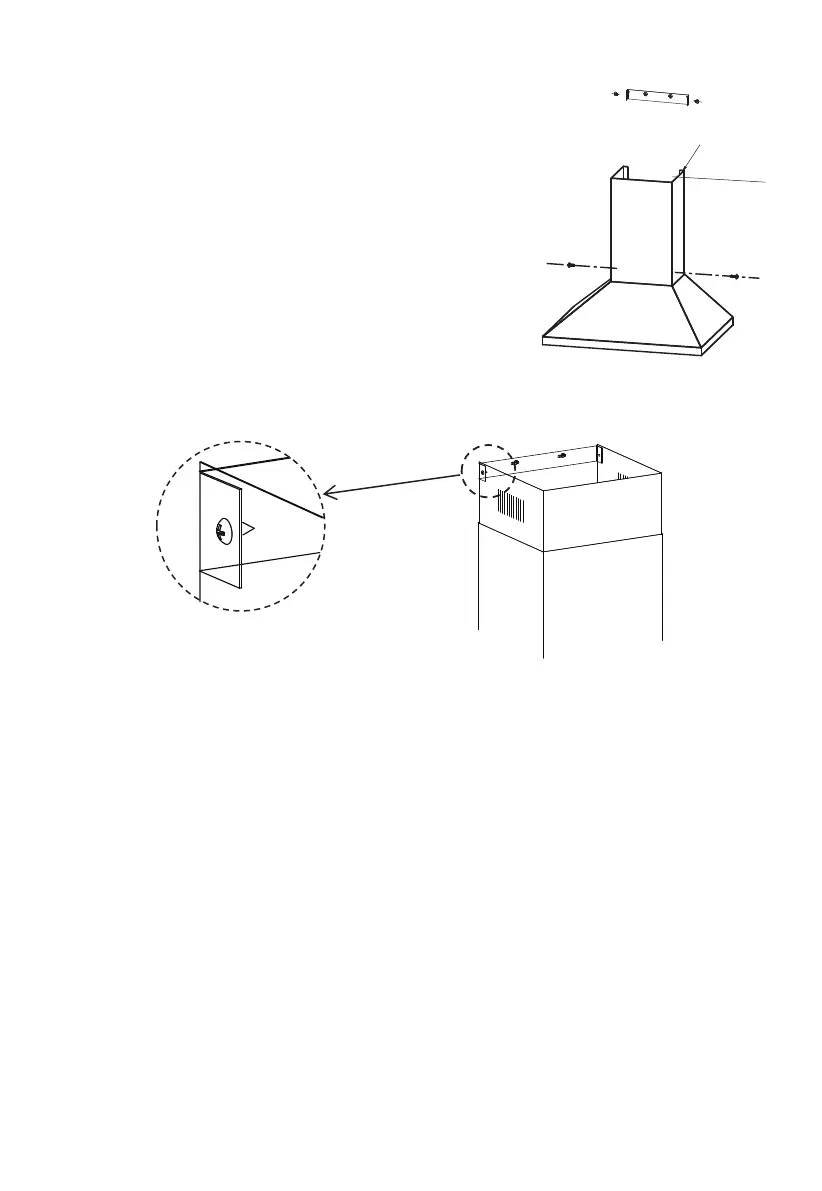 • Fix the upper chimney onto the bracket 21 with 2 screws 12 (0.17'' x 0.37'') supplied