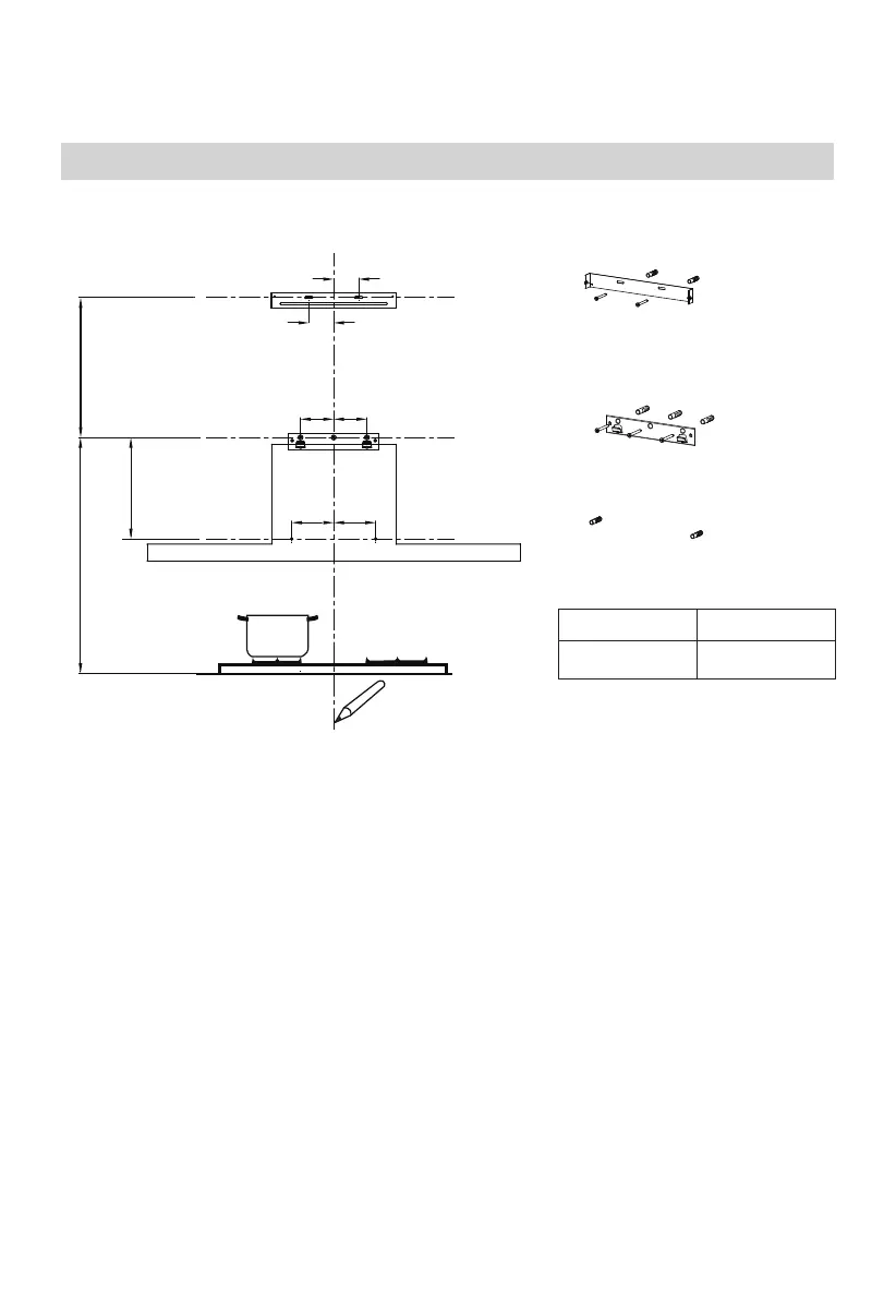 Une ligne horizontaleB à 38.19" – 42.13" au-dessus du plan de cuisson.