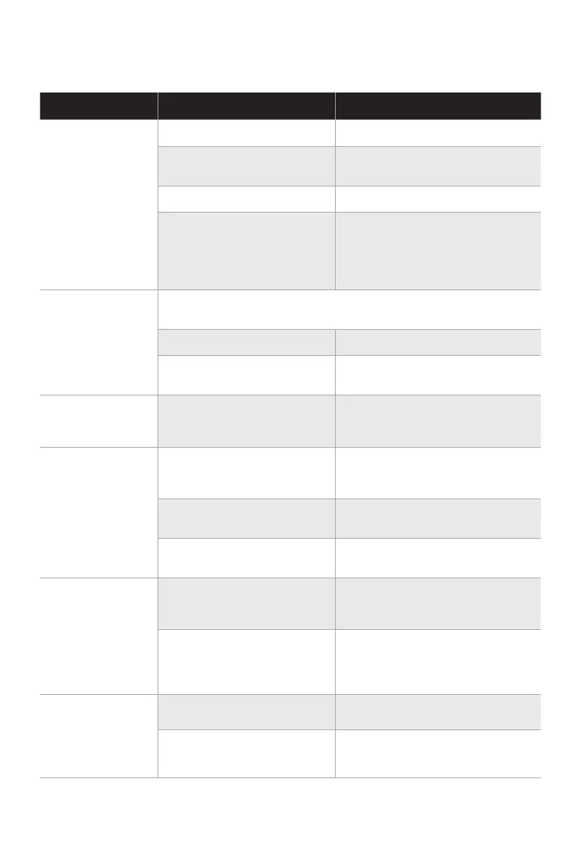 Problème Cause possible Solution
