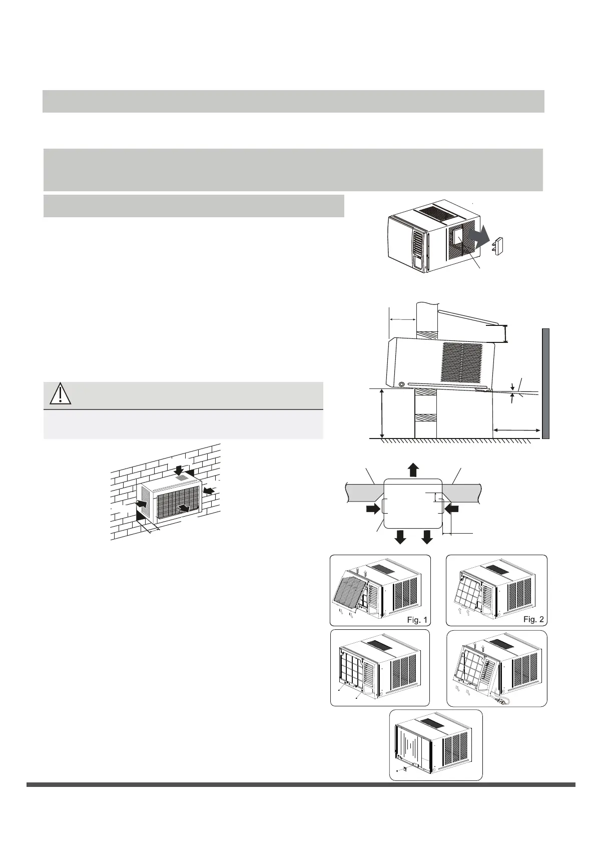 4. Install the unit a little obliquely downward to outside not to leak the condensed
