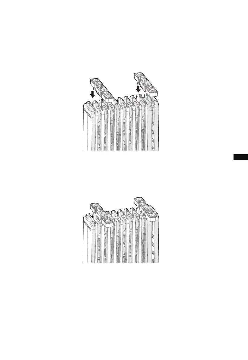 of the heat sink, press in the direction of the arrow, the buckle on the foot. Just drop