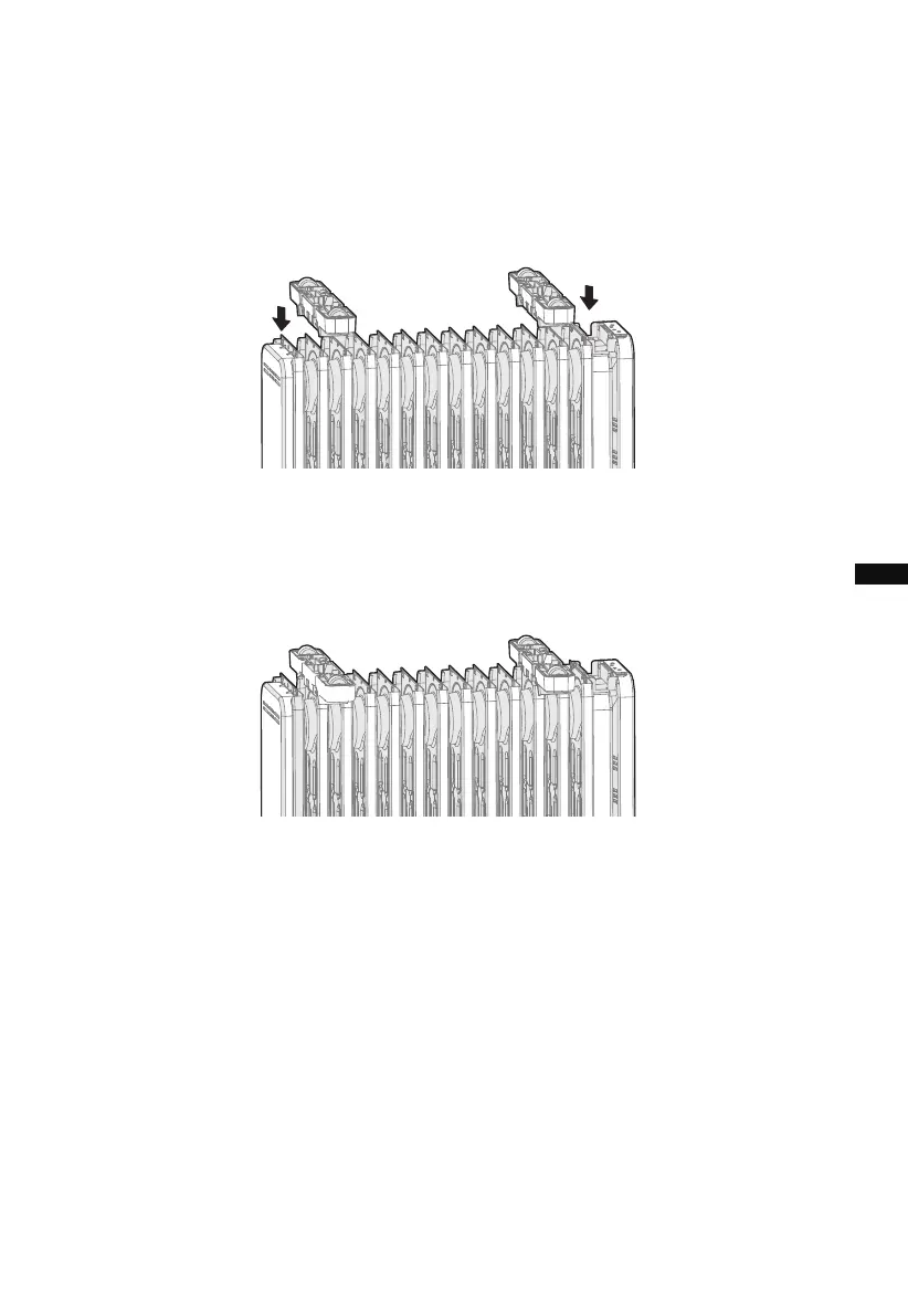 of the heat sink, press in the direction of the arrow, the buckle on the foot. Just drop