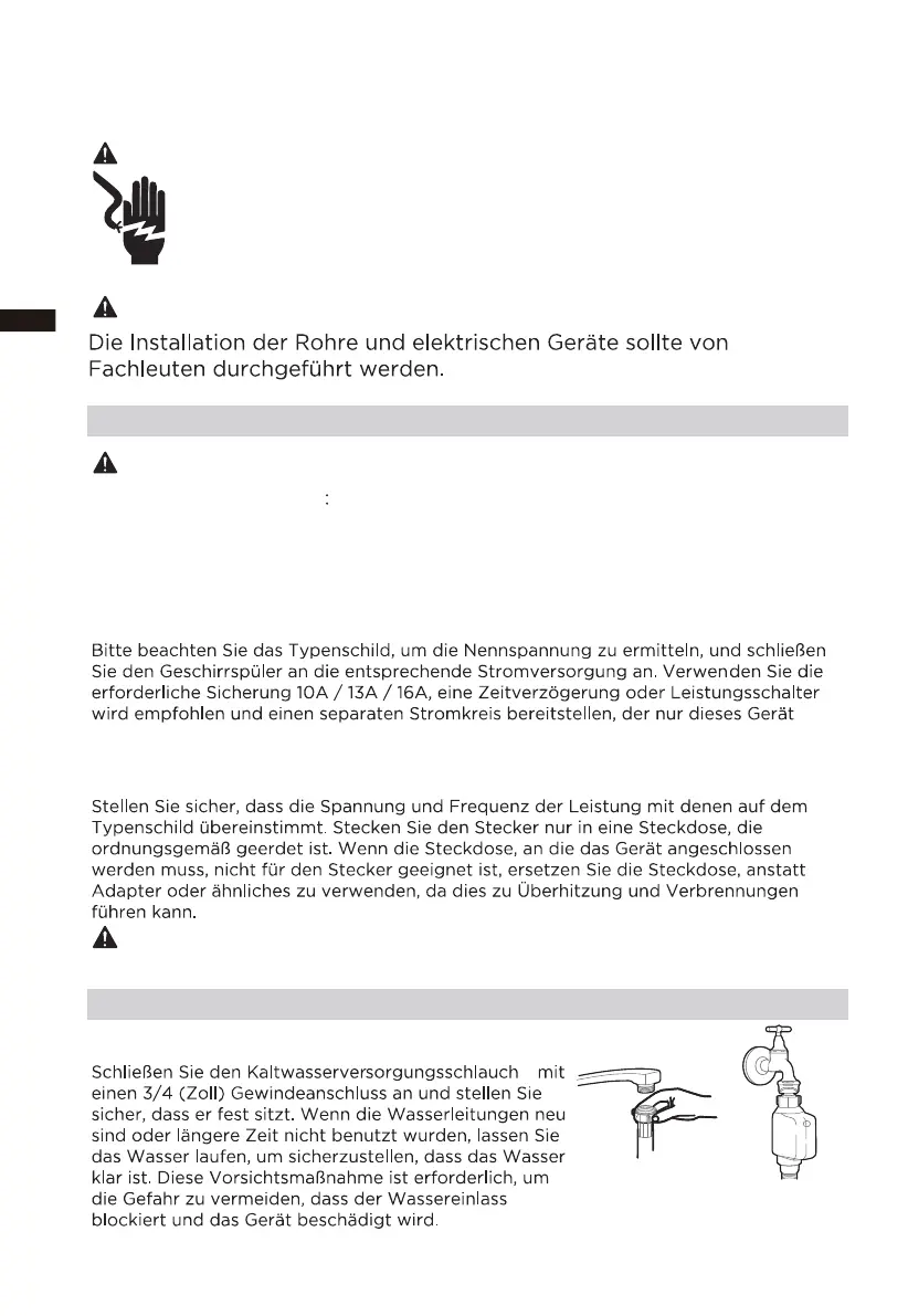 Geschirrspüler installieren. Andernfalls kann es zu Tod oder
