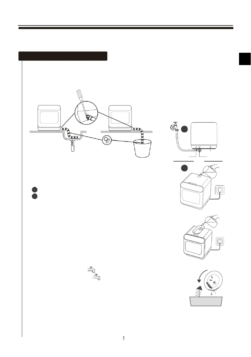La connexion au tuyau de vidange : mettez l’extrémité de la vidange dans un évier ou un seau.