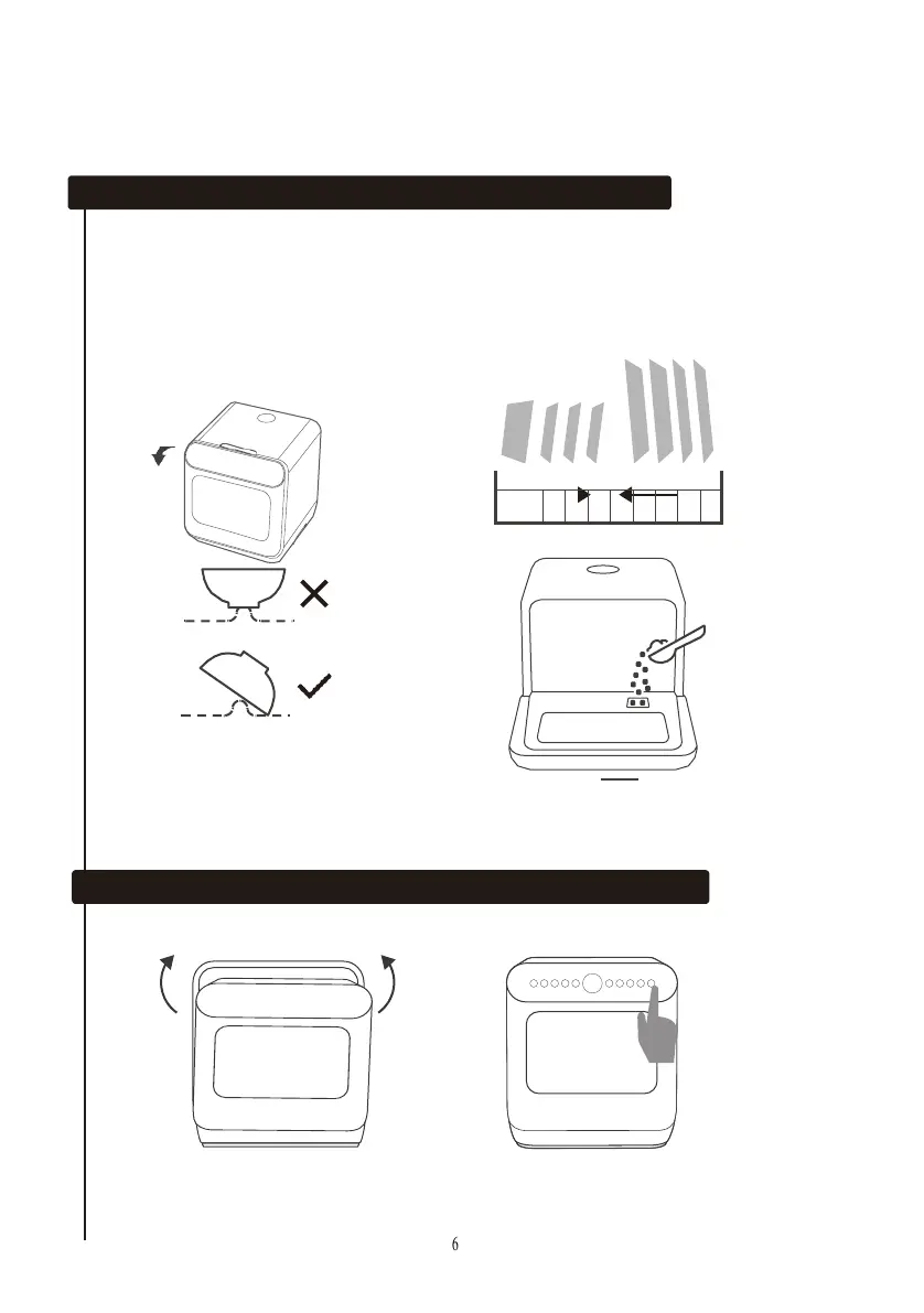 Open de deur, plaats de borden en voeg afwasmiddel toe.