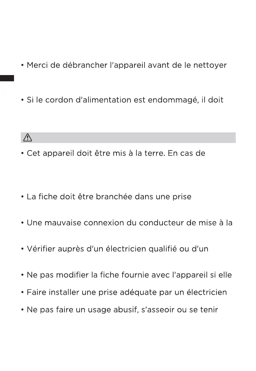 Cet appareil est équipé d'une fiche de mise à la terre.