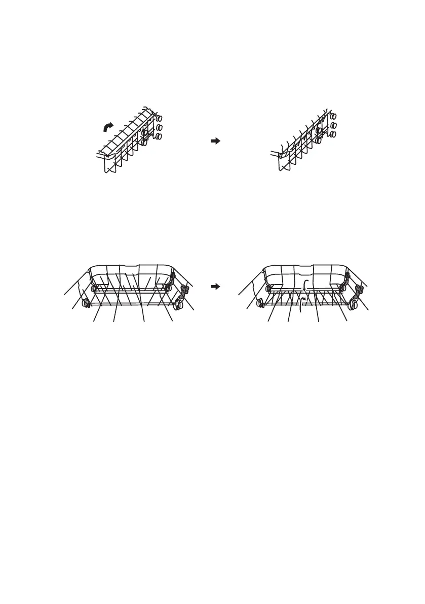 To make room for taller items in the upper basket, raise the cup rack upwards.