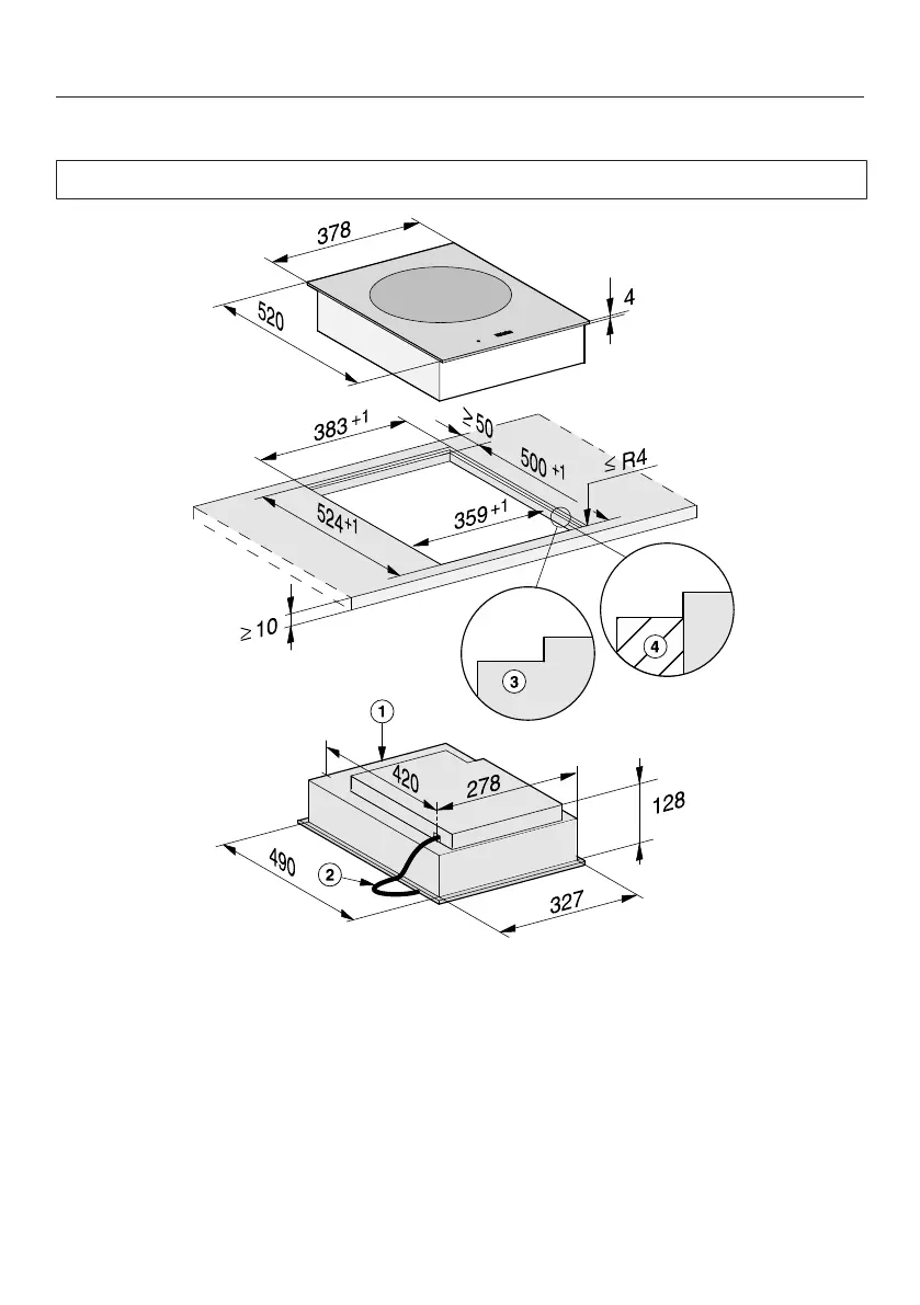 hoofdstuk: “Installatie”, paragraaf “Uitsparing werkblad – naadloos aanslui-
