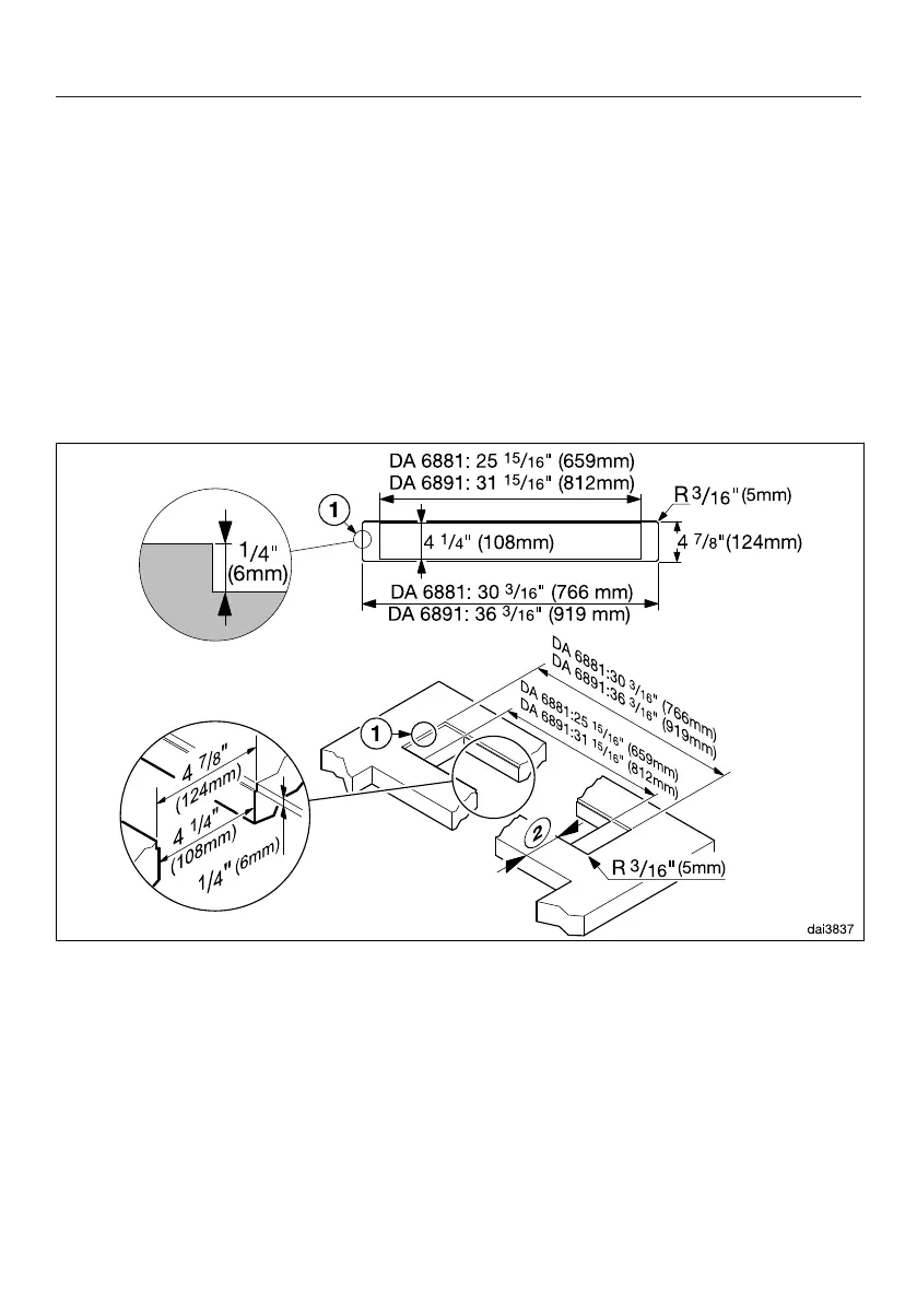 Stepped cut-out for flush-fit installation in stone worktops (granite, marble)