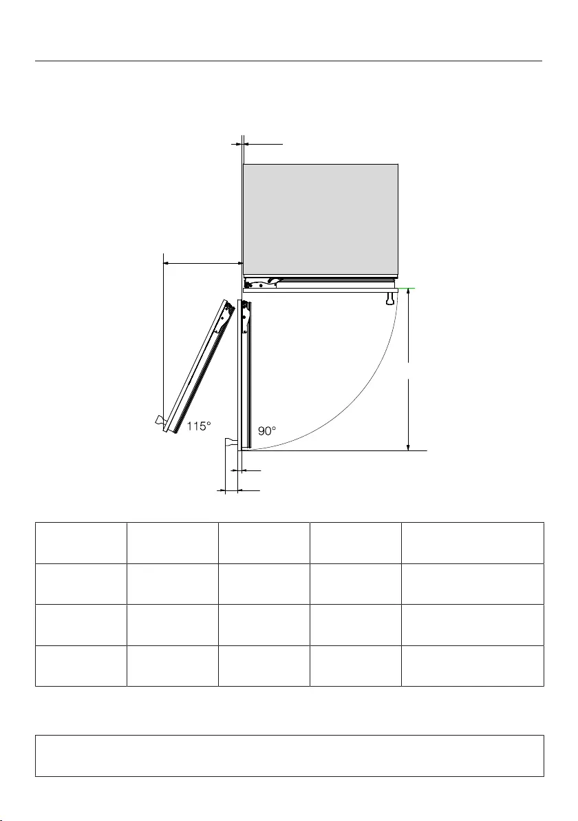 Afmetingen bij geopende deur (openingshoek 115°)
