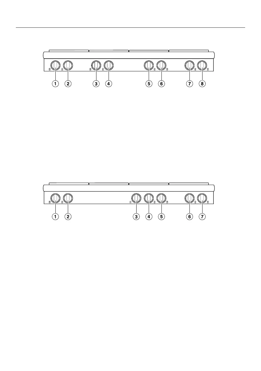 Controls for gas cooktops HR1955-3DF and HR1956-3DF
