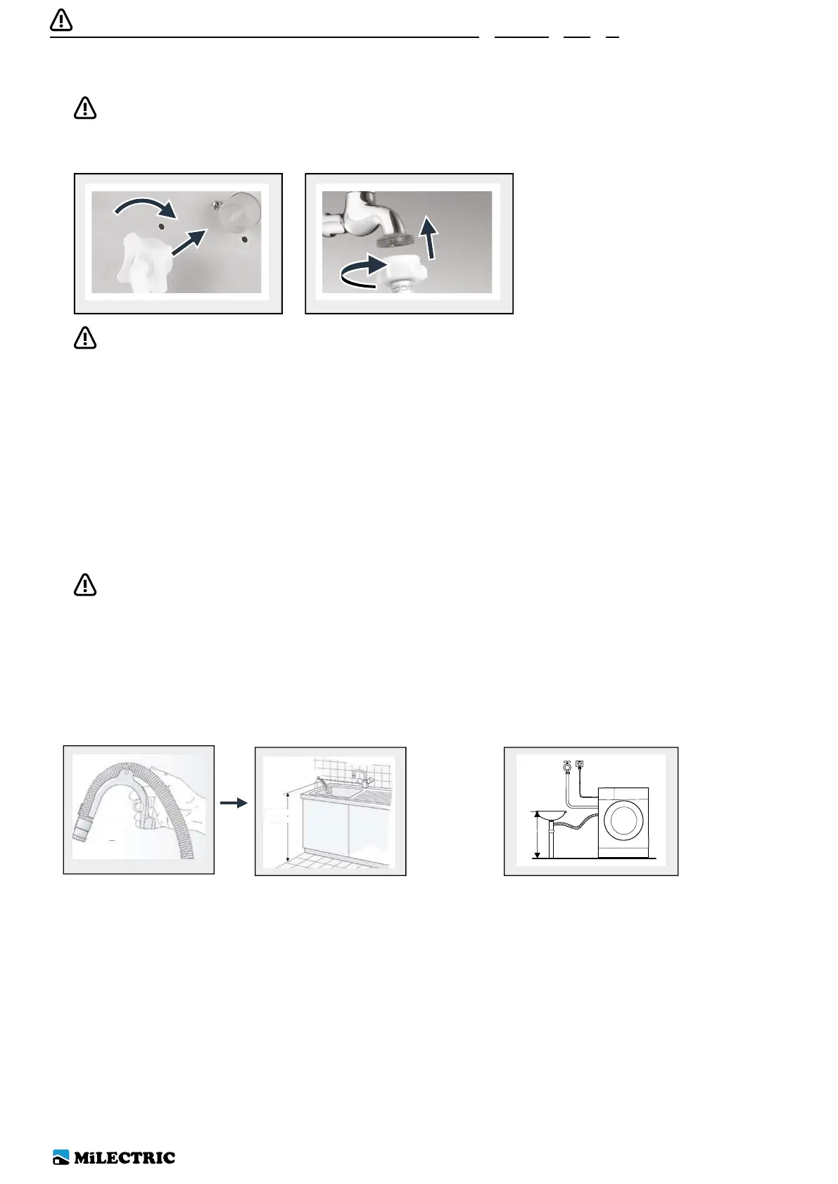 connection points by opening the taps as far as possible. If a leak is visible, close the tap and remove the