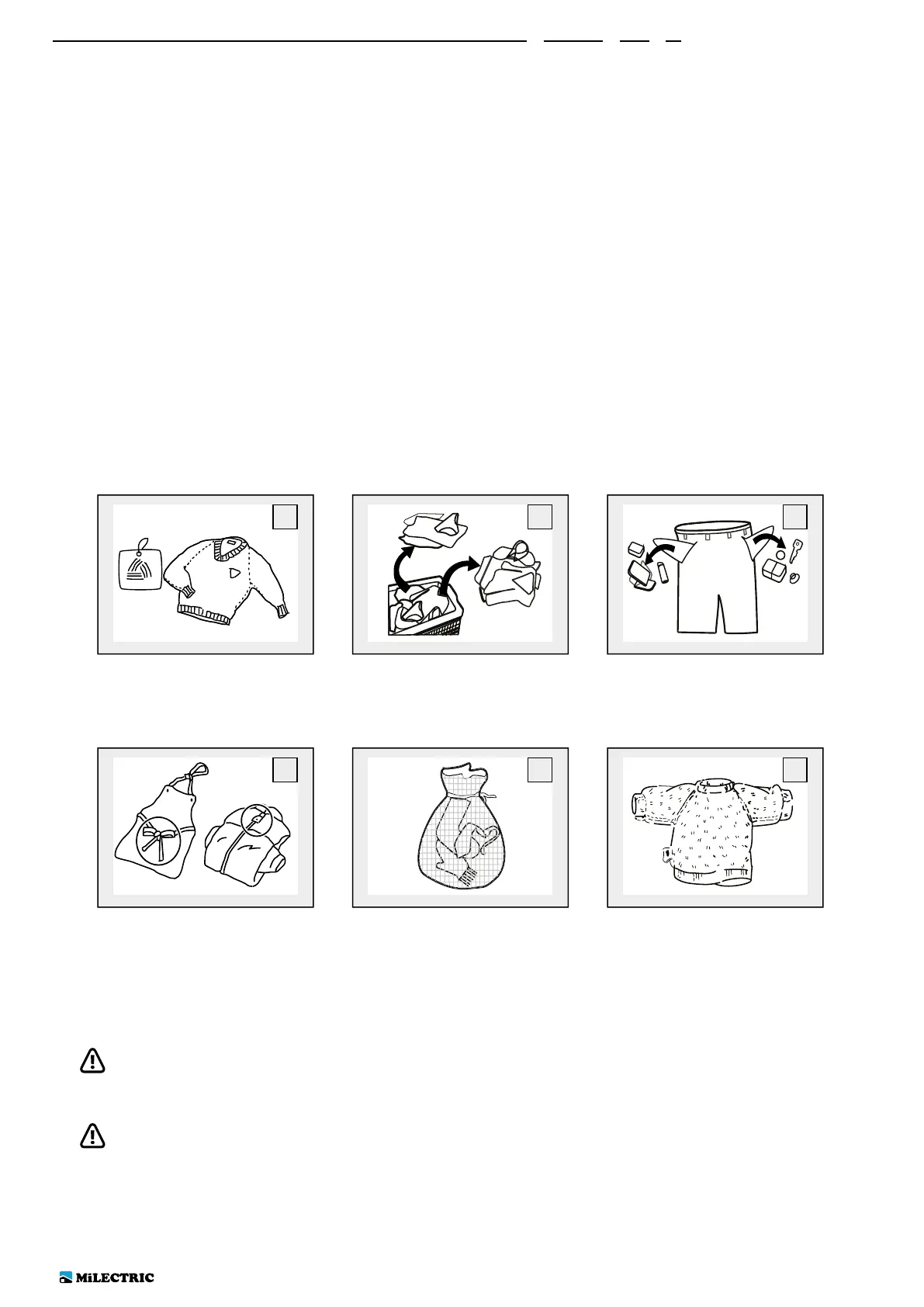 WARNING! Washing loose laundry can create an imbalance in the drum. Always wash more than