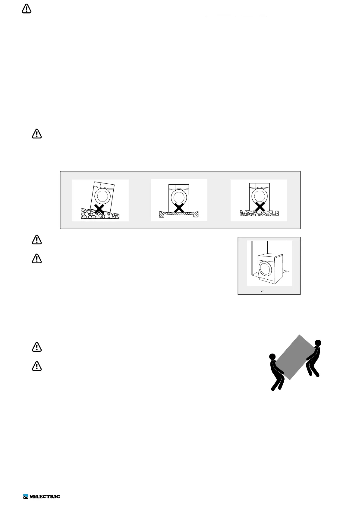 electrodoméstico no se puede transportar en posición vertical, puede inclinarse hacia la derecha