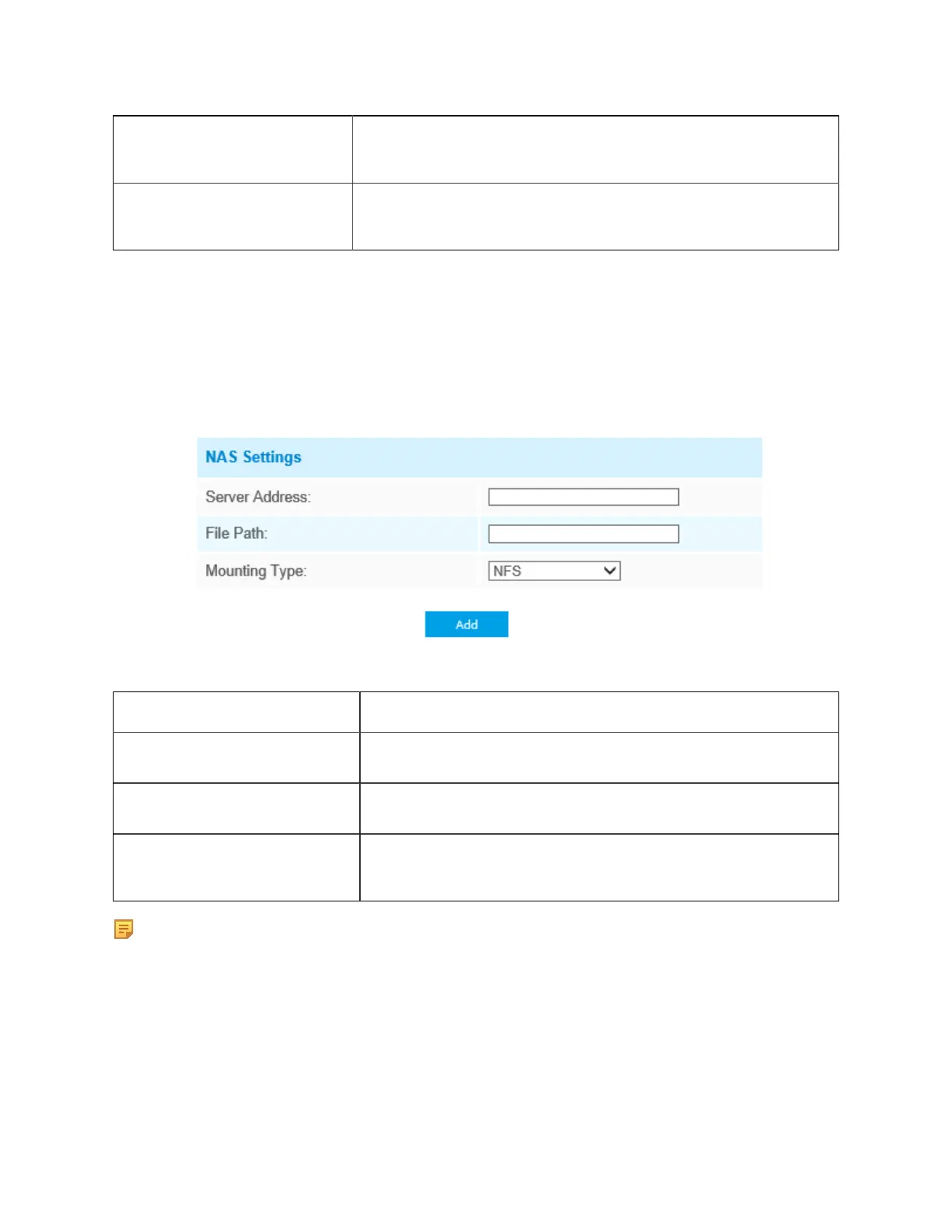Mounting Type NFS and SMB/CIFS are available. And you can set the user name and