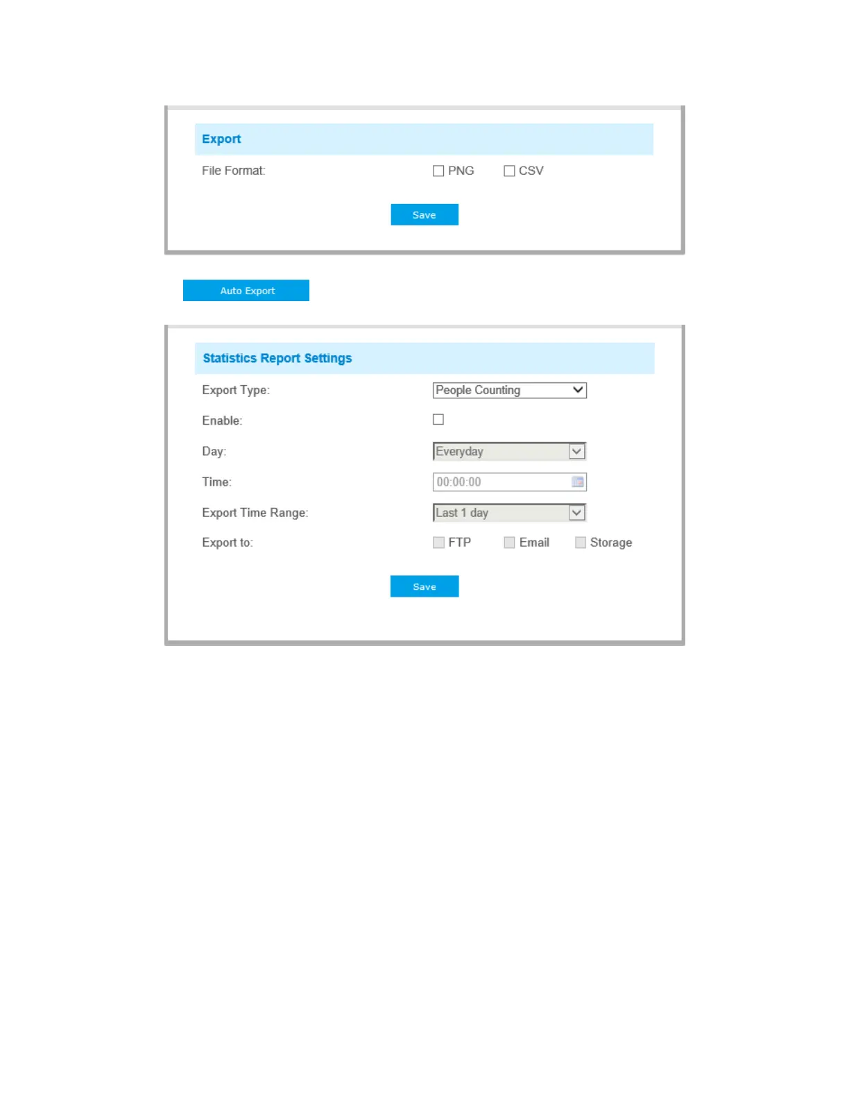 • Set Export Type. User can check People Counting. When People Counting is checked, the gray