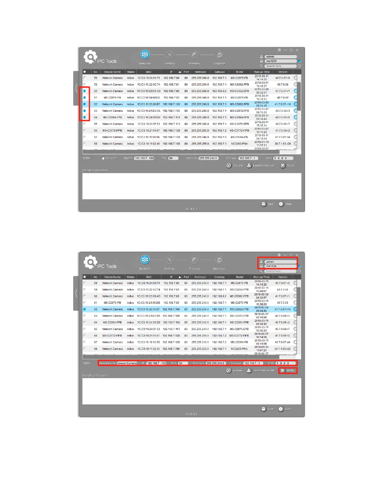 and Password (Camera with version lower than 4x.7.0.69 is using admin/ by default), change the IP