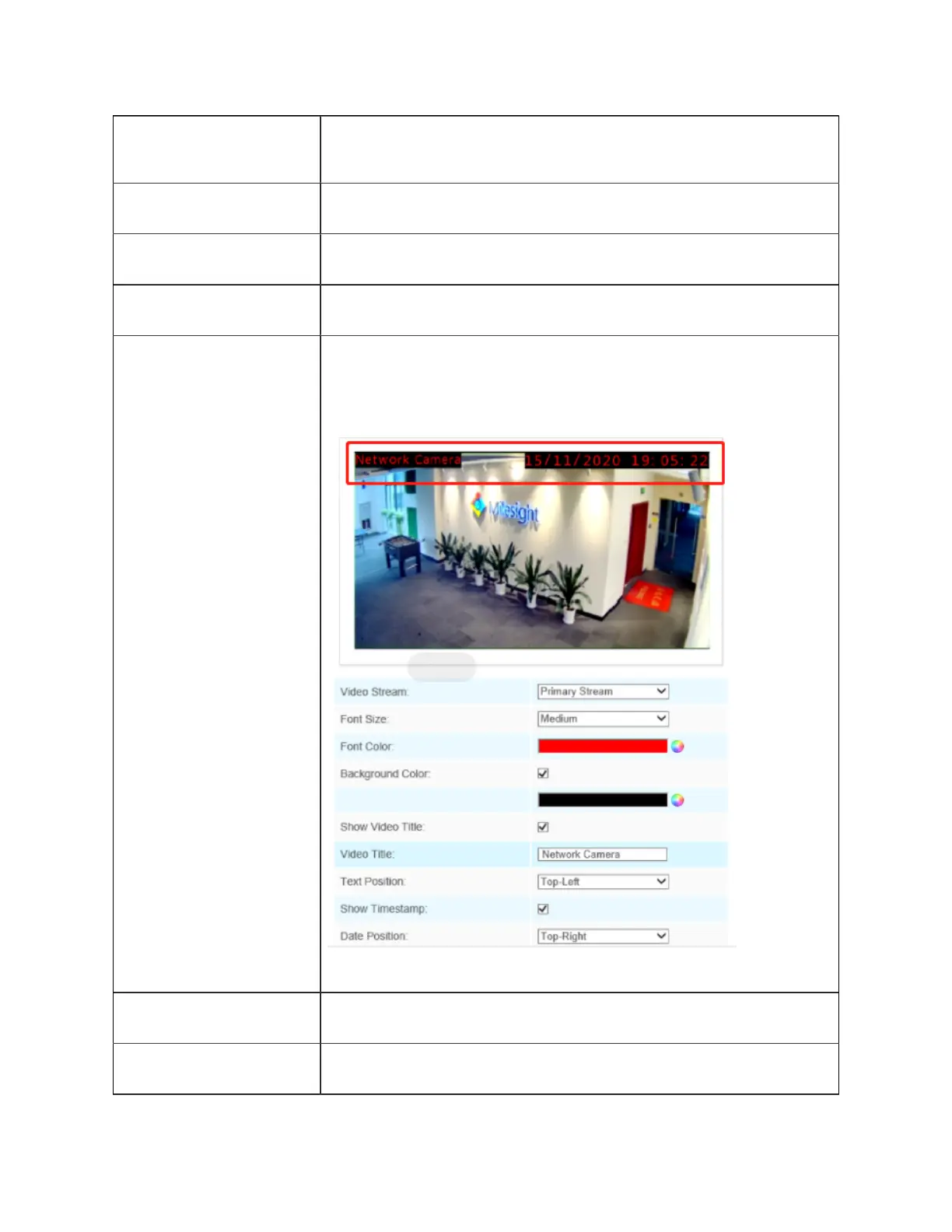Video Stream Enable to set OSD for primary stream and secondary stream