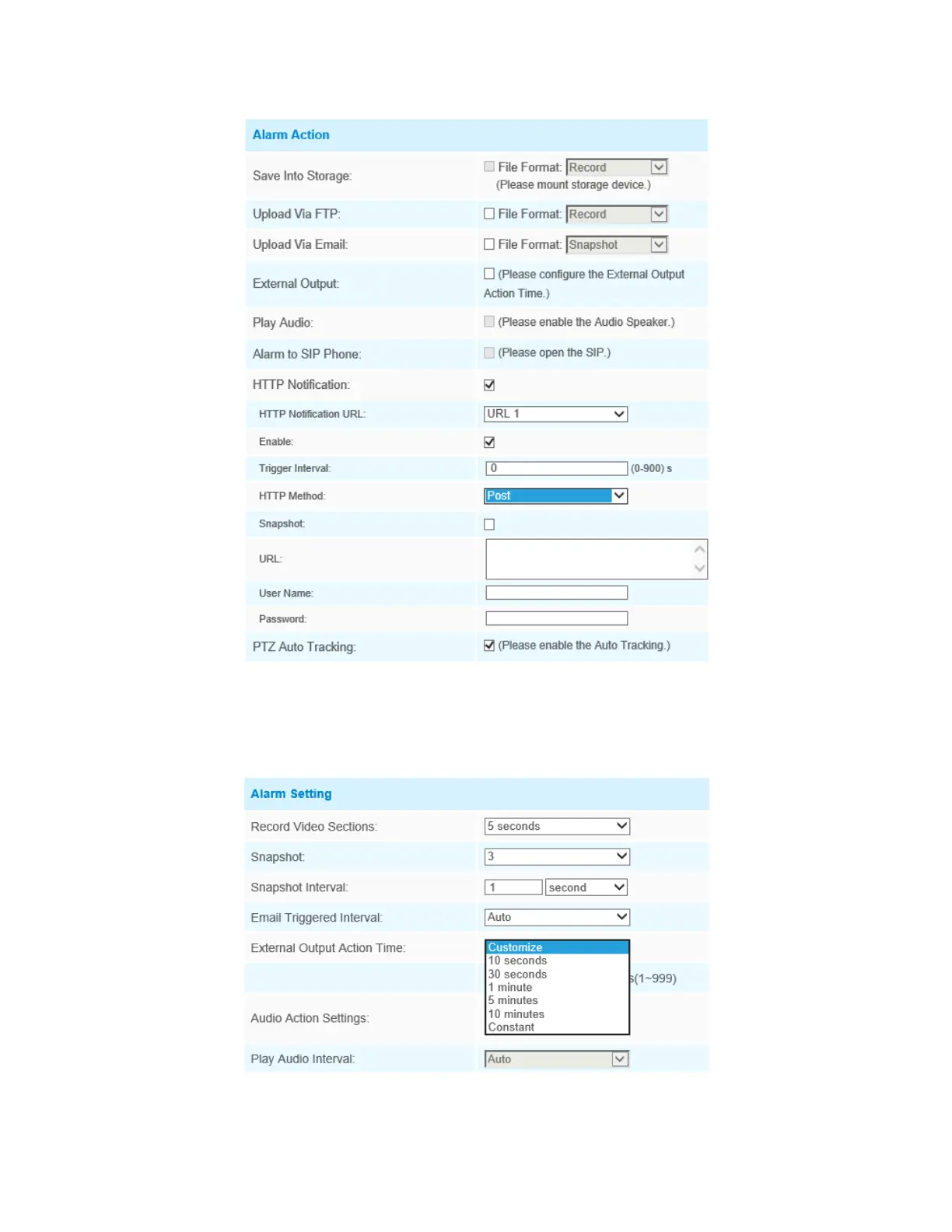 Step5: Set alarm settings. If you enable External Output and choose Constant External Output Action