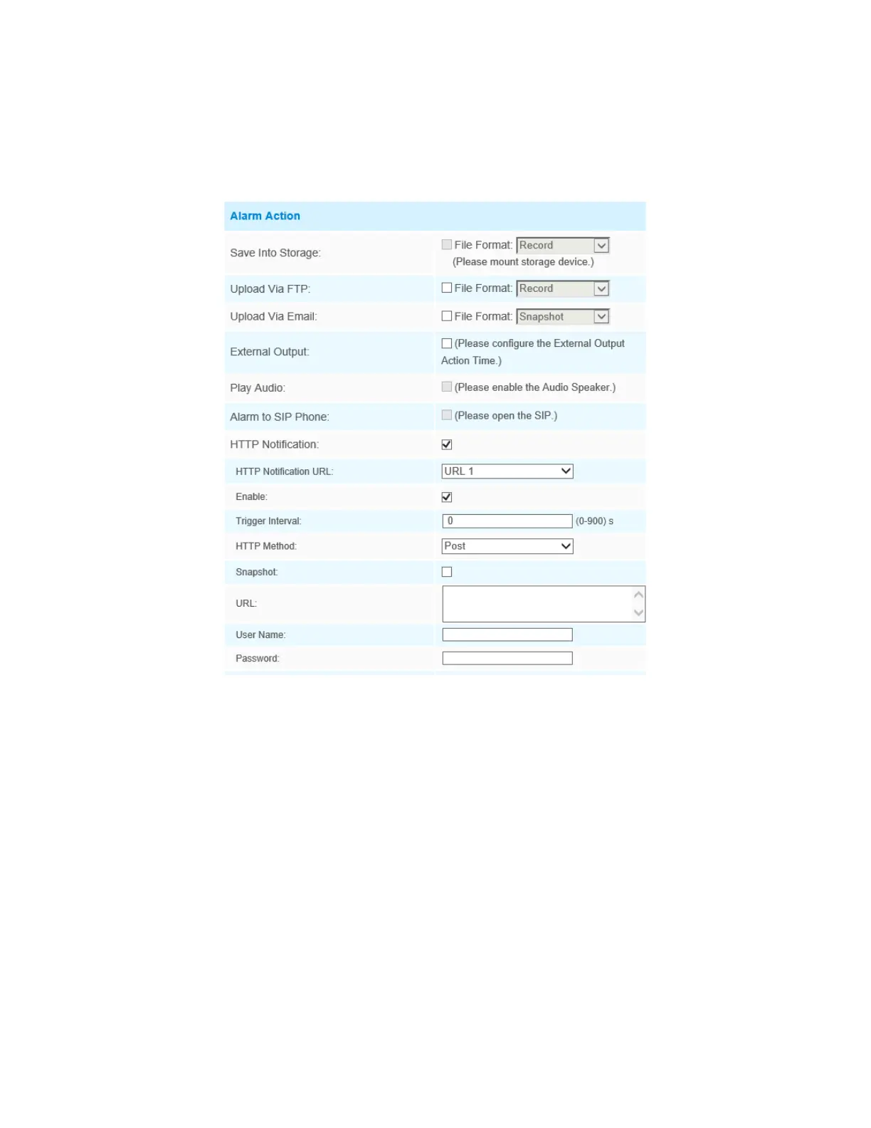 Step4: Set alarm action. When enabling PTZ Auto Tracking and Region Exiting Detection, camera