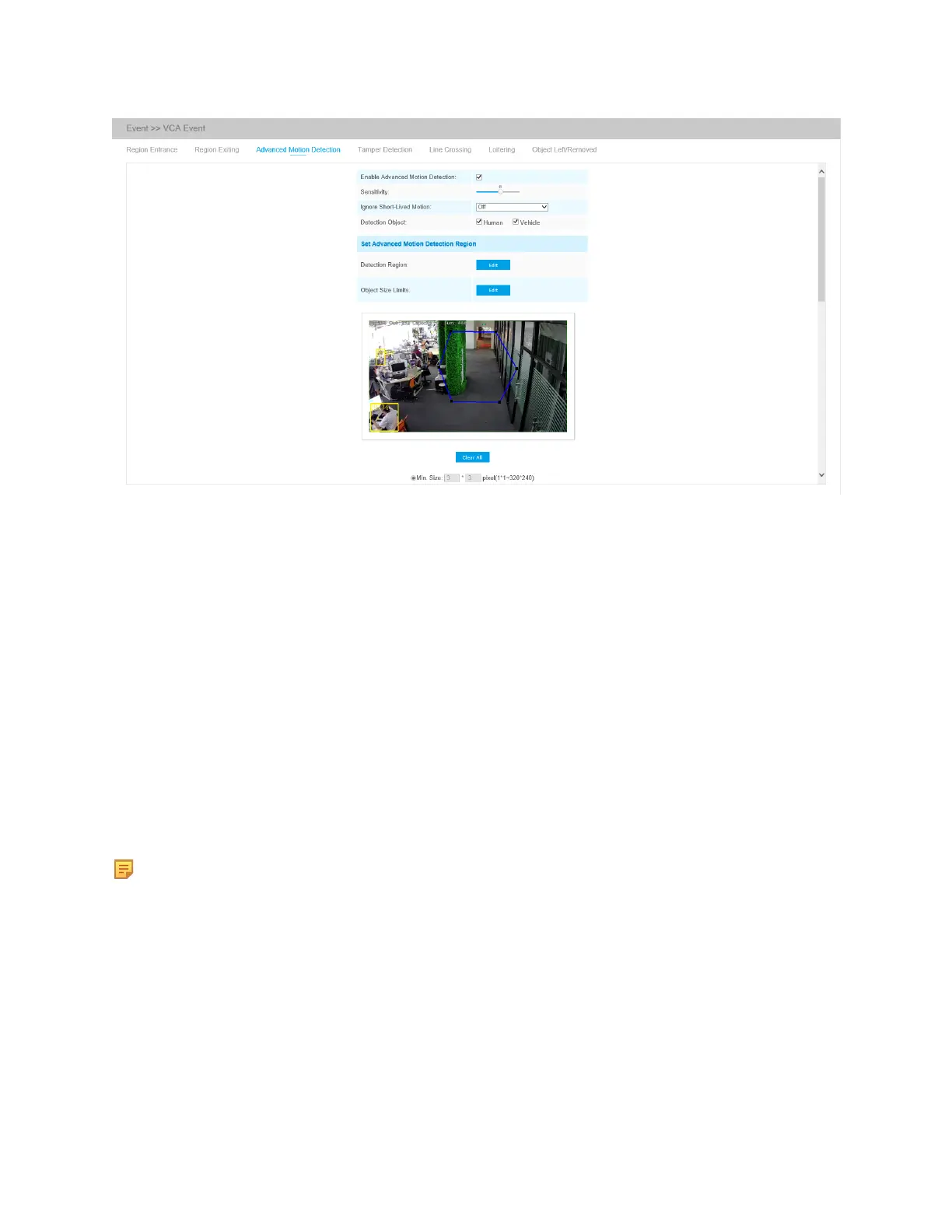 supports configuring the detection region for different PTZ presets (Only support Preset 1~4 so far).