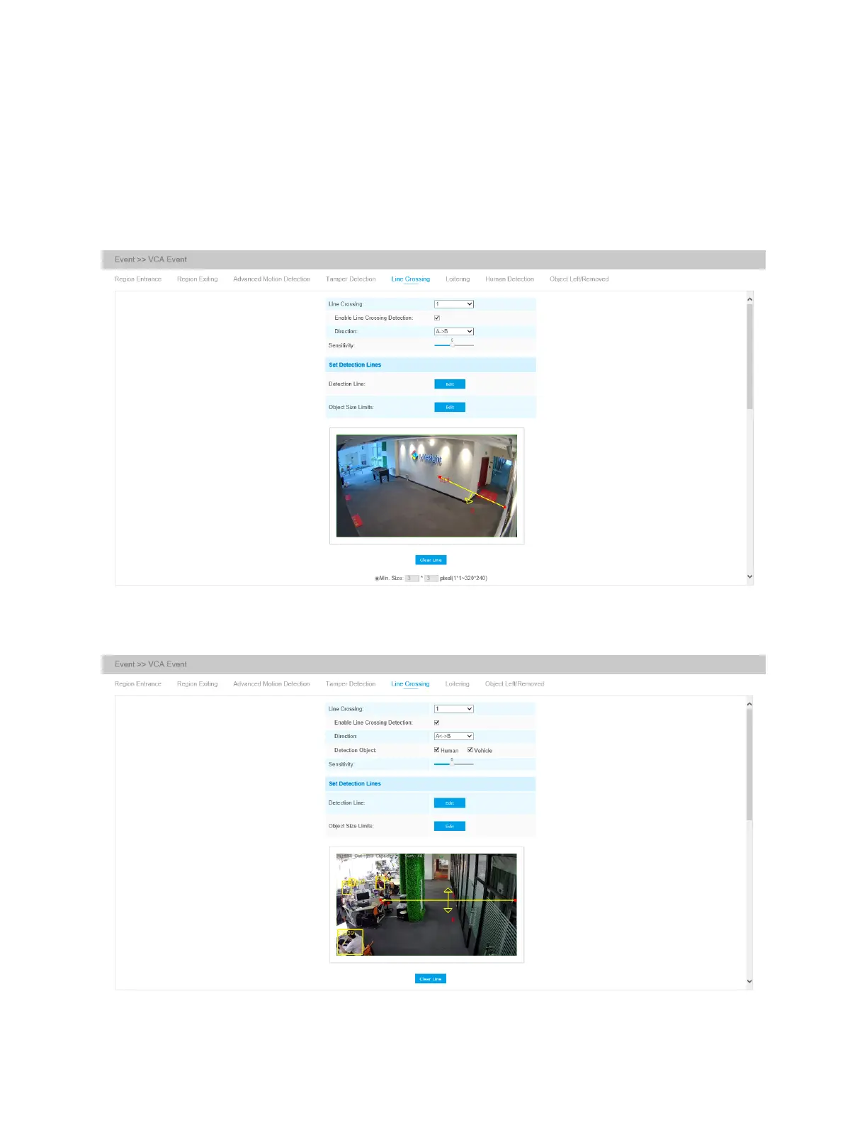 Line Crossing detection is designed to work in most indoor and outdoor environment. An event will