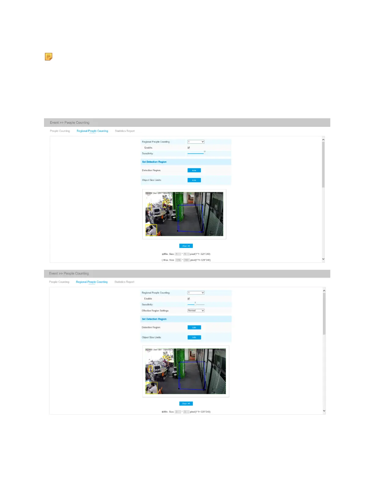 When enabling Regional People Counting, users can check the real-time number of people and the
