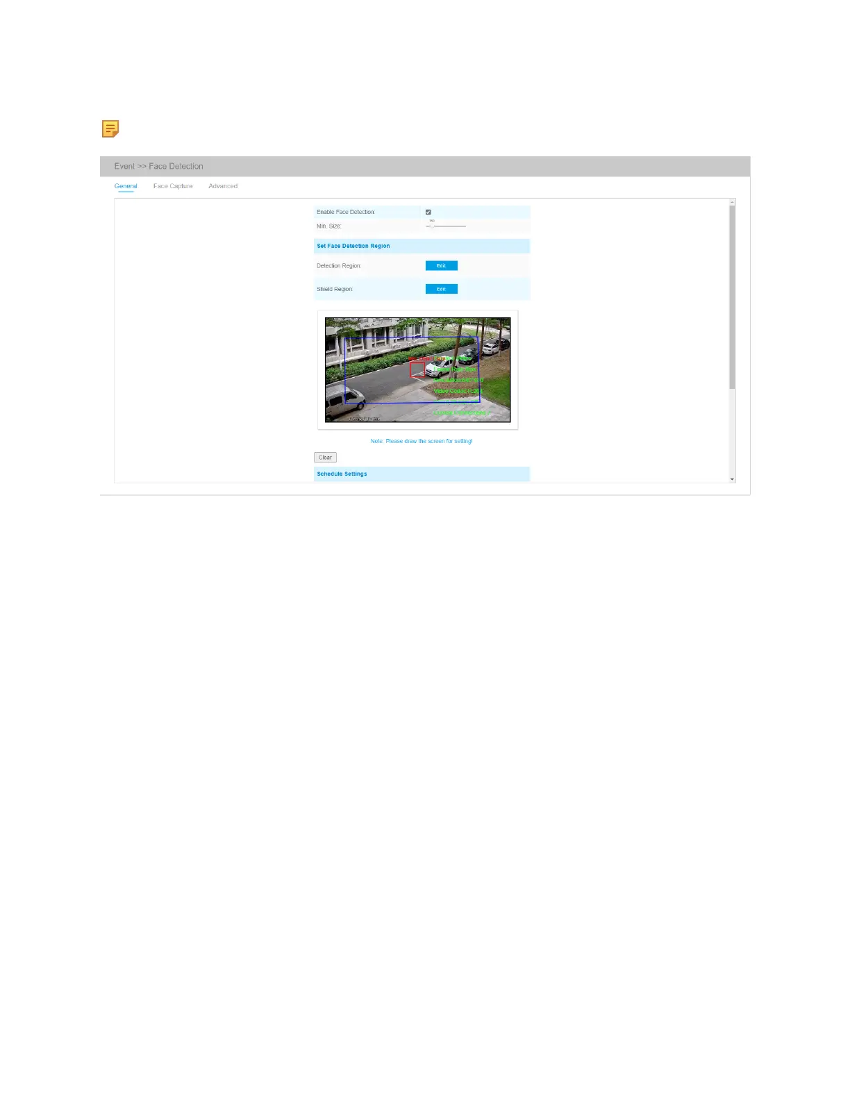 faces can be set to be not detected in some places of detection region via setting the Shield Region.