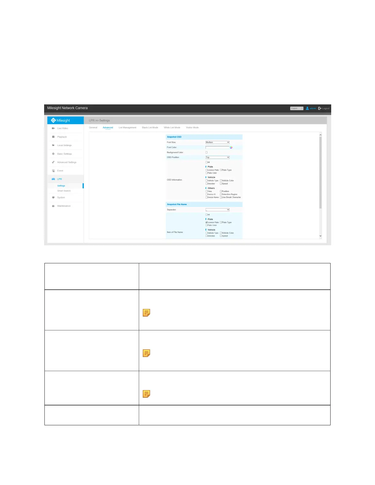 In the interface, you can set display information on snapshot of license plate recognition, and also